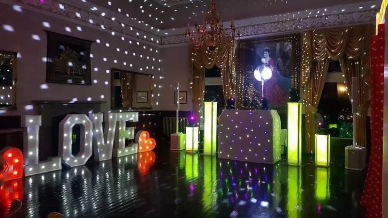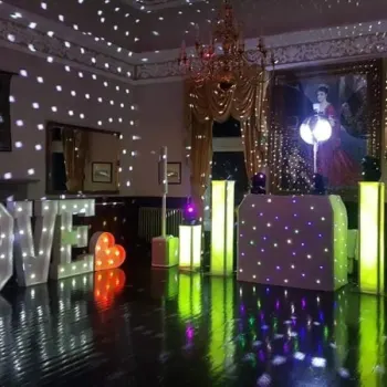 - Photobooths and Magic Mirrors- LED Starlight Dancefloors- LED Starlight Backdrops- LED Light up Love Letters and Numbers- Venue Mood Lighting- Sweetcart/ Candy Carts- Visual Display Units and P.A Hire
